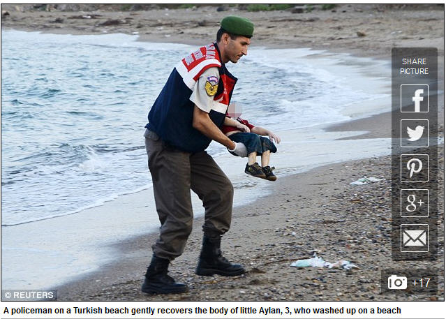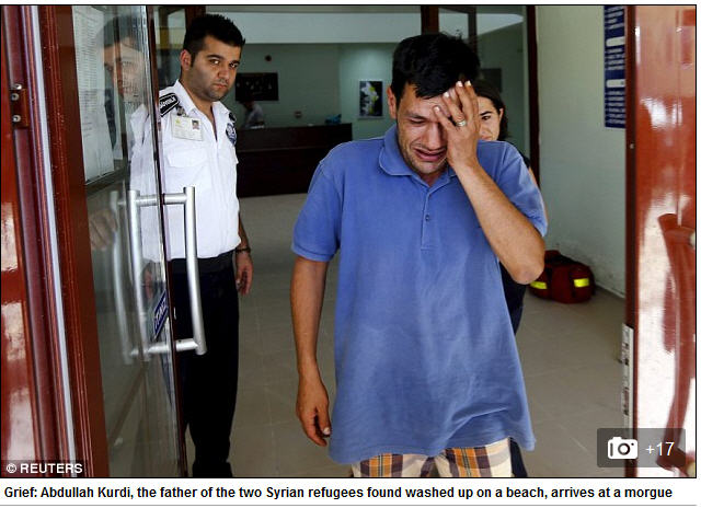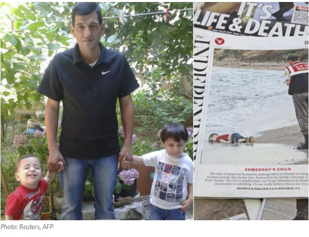 អាកាសធាតុ អំណោយផល ទឹកសមុទ្រ ក៏ថ្លា ឆ្វេង ខណៈសមុទ្រ ស្ងប់ខ្យល់នោះសង្គមគ្រួសារមួយ នេះ ក៏ចាប់ផ្តើមធ្វើការភៀសខ្លួន រំពេចនោះកូន តូចវ័យ ៣ ឆ្នាំ Aylan មានអារម្មណ៍រំភើបជាខ្លាំង ក្នុង ការធ្វើដំណើរ គិតថា ជាដំណើរកំសាន្ត ដោយលាន់មាត់ សួរថា ប៉ា តើពួកយើងធ្វើដំណើរអោយពិត ប្រាកដ ? លោក Abdullah ឆ្លើយថា យើងពិតជាជួបភាពសប្បាយ ក្នុងពេលឆាប់ៗនេះព្រោះយើងធ្វើ ដំណើរទៅកាន់ទឹកដី ប្រទេសអឺរ៉ុប ។ មិនយូរប៉ុន្មាន ធ្វើដំណើរ បានត្រឹមតែ ២០ នាទី សមុទ្រស្ងប់ ខ្យល់ក៏បានបង្ហាញឥទ្ធិពលអាក្រក់ឡើង ដោយចាប់ផ្តើមមានរលកតូចធំៗ ត្រឹមតែមួយពព្រិចភ្នែក រលកធំ ក៏បានវាយប្រហារ ទូករបស់ពួកគេ ជន់លិចតែម្តង ។ វិនាទី នៃការក្រឡាប់លិចទូកនោះ បុរសជាឪពុក ទន្ទឹមនឹងការកាន់ដៃប្រពន្ធ រូបលោក ក៏បានក្រសោបអោបកូន តូច ២ រូប នៅនឹងដៃ សងខាង រួចព្យាយាមតោងទូក ដើម្បីធានាអោយបានថា ពួកគេមានវត្តមាន ខ្ពស់ជាងនីវូទឹកសមុទ្រ ទាំងដង្ហើមនៅដក ប៉ុន្តែ ជាអកុសល ព្រហ្មលិខិត មិនមេត្តានោះទេ ពោល កូនតូច វ័យ ៥ ឆ្នាំ ឈ្មោះ Ghaleb នោះ បានស្លាប់បាត់ទៅហើយ ក្នុងរង្វង់ដៃ របស់លោក ផ្នែកខាងឆ្វេង អាចមកពី ឈ្លក់ទឹក សមុទ្រប្រៃខ្លាំង លោកក៏បានសម្រេចចិត្ត ថា លែងគេចោល ក្នុងផ្ទៃសមុទ្រ ងាកមកមើលថៃ កូនតូច វ័យ៣ ឆ្នាំឈ្មោះ Aylan ។ ប៉ុន្តែមិនយូរ មិនឆាប់ Aylan ក៏ទ្រាំទ្រ នឹងស្ថានការណ៍ ពុំបានដូចគ្នាពោល គេលង់ទឹកស្លាប់ ឈ្លក់ទឹកសមុទ្រស្លាប់ រហូតឈាមចេញតាមភ្នែក វិនាទីនោះហើយ បុរសជាឪពុក ស្រែករកព្រះជួយ "ចូរដកដង្ហើមឡើងកូនៗ ប៉ាមិនចង់ឃើញកូនស្លាប់នោះទេ ព្រះអើយជួយផង ពួកគេ ស្លាប់ហើយ ចូរកូនទាំង ២ ទៅកាន់សុគតិភពចុះ" បុរសជាឪពុក និយាយ ។ ដោយឡែក ស្របពេលជា មួយនឹងគ្នានោះ លោក Abdullah សម្គាល់បានថា ប្រពន្ធរបស់គាត់បានលង់ទឹកស្លាប់ទៅហើយ ព្រោះនាង មិនចេះហែលទឹកនោះទេ ។ចុងក្រោយនៅសល់តែឯកឯង បុរសរូបនេះ សឹងតែមិនចង់ រស់នោះ ក៏បានហែលស្រវេស្រវា ដល់ច្រាំងប្រទេស ទួរគី ដែលមានប្រវែង ៥០០ ម៉ែត្រ ពីមាត់ជ្រាំង បើចាប់គិតពីកន្លែងកើតហេតុ។
