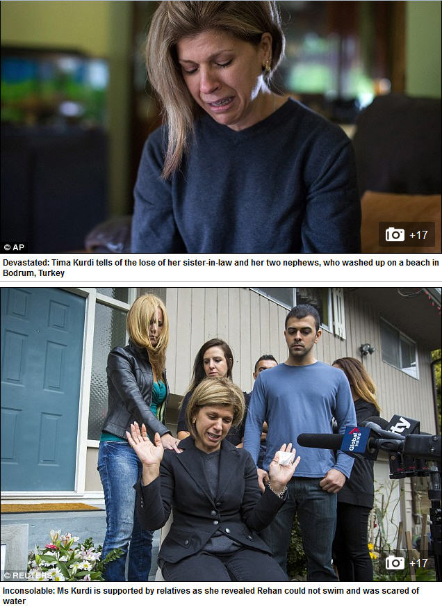 ក្រោយកើតហេតុ នៃគ្រោះអកុសល រូបនេះ ពិភពលោកមានភាពតក់ស្លុតជាខ្លាំងនៅពេលដែលបាន ដឹងឮព័ត៌មានលម្អិត ក្រោយប្រទះឃើញ ភាពល្បីល្បាញ នៃរូបភាព សពក្មេងតូច វ័យ ៣ ឆ្នាំ ស្លាប់ អណ្តែតដល់ជ្រាំង ប្រទេស ទួរគី ដែលប្រការនេះ ជាការស្តីបន្ទោស ដល់ ក្រុមរដ្ឋអ៊ីស្លាមជ្រុលនិយម ISIS ដែលធ្លាប់តែបង្កទុក្ខទោម្នេញ ដល់ជនស៊ីវិល រហូតឈាន ដល់ការរត់ភៀសខ្លួន ។ ទន្ទឹមនឹង គ្រោះអកុសល នៃវិនាសកម្ម មួយនេះ លោកស្រី Tima Kurdi ដែលត្រូវជា បងប្អូនស្រី លោក Abdullah នោះ បានធ្វើសន្និសិទកាសែត ពីទីក្រុង Vancouver ប្រទេស កាណាដា អោយដឹងថា ៖ ដើមឡើយ ប្អូនថ្លៃស្រីរបស់នាងខ្ញុំ ដែលត្រូវជាភរិយា ប្អូនប្រុសខ្ញុំបាទនោះ មុនថ្ងៃកើតហេតុ មួយថ្ងៃ នាងបានទូរស័ព្ទ មកកាន់ខ្ញុំបាទ នាងពិតជាមិនចង់ធ្វើដំណើរ តាមទូកនោះទេព្រោះថានាងខ្លាចទឹក ជាខ្លាំង ព្រោះមិនចេះហែលទឹក តែនាងស្របតាមគំនិតគ្រួសារត្រូវតែជម្លៀសខ្លួន ដើម្បីរកកន្លែង ស្ងប់សុខ ។ លោកស្រី Tima Kurdi គូសបញ្ជាក់ពី កាណាដា នាងខ្ញុំ ក៏ធ្លាប់ដាក់ពាក្យស្នើសុំ ធានា ទៅកាន់ នាយកដ្ឋានអន្តោប្រវេសន៍ កាណាដា ធានាពួកគេ មករស់នៅទីនេះ ប៉ុន្តែ ត្រូវបានបដិសេធ