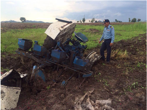 បាត់ដំបង៖ បុរសម្នាក់បានបើកត្រាក់ទ័រ ភ្ជួរដីចំការរបស់ខ្លួនបានជាន់មីនតោន ផ្ទុះស្លាប់ខ្លួនឯង កាលពីវេលាម៉ោង៣និង៤០នាទី រសៀលថ្ងៃទី៥ ខែឧសភា ឆ្នាំ២០១៥ នៅចំណុចភូមិអូរតាសុខ ឃុំពេជ្រចិន្តា ស្រុកភ្នំព្រឹក។
