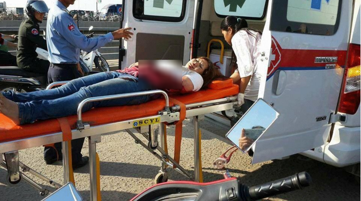 សាក្សីដែលបានឃើញហេតុការណ៍នេះ បានឲ្យដឹងថា មុនពេលកើតហេតុស្ត្រីរងគ្រោះ បានធ្វើដំណើរដោយម៉ូតូរបស់ខ្លួន នៅលើស្ពានព្រះមុនីវង្សចាស់ ប៉ុន្តែមិនដឹងយ៉ាងមិច ក៏ស្រាប់តែរថយន្តមកបុកចំពីក្រោយ បណ្តាលឲ្យដួលម៉ូតូ របួសធ្ងន់ដាច់សាច់កំភួនដៃខាងឆ្វេង ភ្លាមៗក្រោយកើតហេតុស្ត្រីរងគ្រោះ ត្រូវបានបញ្ជូនទៅកាន់មន្ទីរពេទ្យ ដើម្បីជួយសង្គ្រោះ។