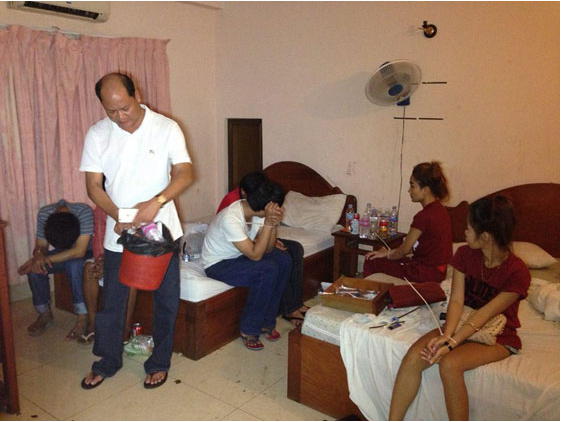 ភ្នំពេញ៖ កម្លាំងនគរបាលការិយាល័យប្រឆាំងគ្រឿង ញៀន រាជធានីភ្នំពេញ ដឹកនាំដោយ លោក ប៊ន សំអាត ស្នង ការរង និងមានការឯកភាពពីព្រះរាជអាជ្ញារង លោក សៀង សុខ នៅម៉ោង ៨ និង៤០នាទីយប់ថ្ងៃទី១៣ ខែកញ្ញា ឆ្នាំ២០១៥ បានចុះទៅបង្ក្រាបករណីចែកចាយ និង ប្រមូលផ្តុំគ្នាជក់ថ្នាំញៀន នៅផ្ទះសំណាក់ «ឋាឡាលី» ទល់មុខ វត្តទួលទំពូងតាមផ្លូវលេខ១៤៣ សង្កាត់បឹងកេងកងទី៣ ខណ្ឌចំការមន ដោយឃាត់ខ្លួនជនសង្ស័យ១៣នាក់ ស្រី ៥នាក់ មេការផ្ទះសំណាក់ម្នាក់ និងដកហូតថ្នាំ១៤កញ្ចប់។