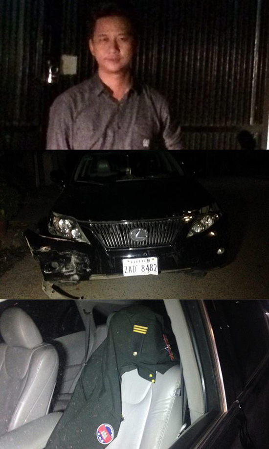 មន្រ្តីនគរបាលមូលដ្ឋាន បានឲ្យដឹងថា រថយន្តបង្កម៉ាក Luxus RX350 ពណ៌ខ្មៅស្លាកលេខ ភ្នំពេញ 2AD-8482 ដែលធ្វើដំណើរមកពី ស្ពានអាកាស ក្បាលថ្នល់ លុះបើកមកដល់ជិតរង្វង់មូល វិមានឯករាជ្យ បុរសជាមន្ត្រីយោធា ដែលស្រវឹងនោះទប់ខ្លួនលែងជាប់ បានបើករថយន្តបុកទ្វារ ទម្លុះចូលក្នុងផ្ទះប្រជាពលរដ្ឋ មួយកន្លែងដែលនៅជិតរង្វង់ មូលវិមានឯករាជ្យនោះ បណ្តាលឲ្យបាក់ទ្វារដែករបងភូមិគ្រឹះ និងខូចខាត រថយន្តសេរីទំនើប២គ្រឿង ដែល១គ្រឿងម៉ាក Luxus LS450L ស្លាកលេខ ភ្នំពេញ 2AQ-7778 បែកកញ្ចក់ខាងឆ្វេង និងកូតថ្នាំខាងក្រោយខ្ទេច និង១គ្រឿងទៀតម៉ាក Peugeot ពណ៌ខៀវ ស្លាកលេខរដ្ឋ 09-2-0050 រងការខូចខាតផ្នែកខាងមុខ។