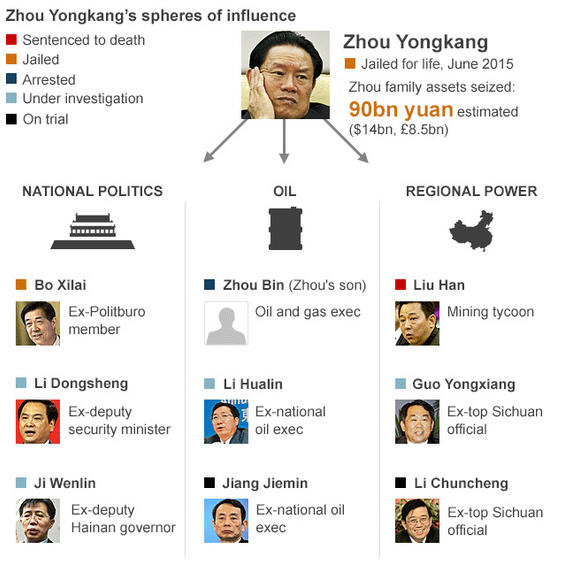 មុននឹងលោកចូលនិវត្តន៍ អំឡុងឆ្នាំ ២០១២ កន្លងទៅនេះ លោក Zhou ធ្លាប់ ជាអ្នកនយោបាយ ដ៏ មានឥទ្ធិពលមួយរូប នៅក្នុងប្រទេសចិន ។ មួយឆ្នាំបន្ទាប់ លោក ជា មុខសញ្ញាសំខាន់ ខណៈស្ថិត នៅក្រោមការតាមដានស៊ើបអង្កេតជាពិសេសជាផ្នែកមួយនៃយុទ្ធនាការរបស់ប្រធានាធិបតីប្រទេស ចិន លោក Xi Jinping យុទ្ធនាការ ប្រយុទ្ធប្រឆាំង ដាច់ខាត អំពើពុករលួយ ។ ទូរទស្សន៍រដ្ឋចិនបាន ចាក់ផ្សាយនូវឃ្លីបមួយ បញ្ជាក់អោយឃើញជាក់ស្តែង លោក Zhou បច្ចុប្បន្នភាព មានវ័យ ៧២ ឆ្នាំ ហើយនោះ បង្ហាញវត្តមានឡើងនៅក្នុងបន្ទប់សាវនាការ ភាគ ខាងជើង ក្រុង Tianjin ខណៈឆ្លើយ តបទៅនឹងអង្គចៅក្រម បន្ទាប់ពីធ្វើសេចក្តីសម្រេច លោក Zhou អោយដឹងថា លោកមិនប្តឹងឧទ្ធរ ណ៍នោះទេ ។ លោកបញ្ជាក់យ៉ាងច្បាស់ អោយដឹងថា ៖ ខ្ញុំ បាន ដឹងថាខ្ញុំនាំមកនូវហានិភ័យ ដល់ បក្ស ក៏ដូចជា ប្រជាជន ខ្ញុំសុខចិត្តទទួលកំហុស ហើយខ្ញុំពិត ជា សោកស្តាយ ចំពោះកំហុសឆ្គងដ៏ ធំមួយនេះ ៕