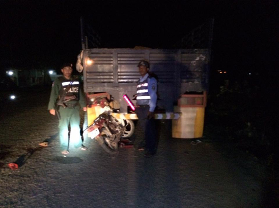 សមត្ថកិច្ចបញ្ជាក់ថា រថយន្តធុនធំ មានសណ្តោងរ៉ឺមកនោះខូច ហើយបានឈប់នៅលើទ្រូងថ្នល់ ដោយ មានកាច់មែកឈើ ដាក់ពីក្រោយរថយន្ត ចម្ងាយប្រហែល៣០ម៉ែត្រ និងមានអំពូលភ្លើងតូចមួយ ដាក់ ជាប់ទ្រុងក្រោយ តែមិនដឹងជាយ៉ាងម៉េច បានបុរសរងគ្រោះពីរនាក់ប្តីប្រពន្ធ មើលមិនឃើញ បុកពេញ ទំហឹងតែម្តង។