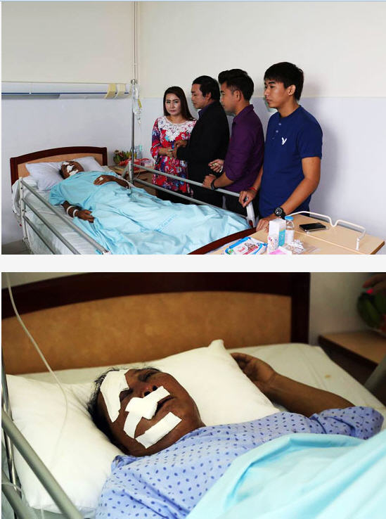 តារាសម្ដែងកំពុងឡើងកូដរូបនេះ បានប្រាប់ឲ្យដឹងទៀតថា «ពេលនេះខ្ញុំ ពិបាកចិត្តណាស់បង..! របួសគាត់ធ្ងន់ធ្ងរ ពីរបីយប់នេះ ខ្ញុំអត់បានដេកទេ គឺនៅកំដរគាត់រហូតហ្នឹង ..! ពេទ្យថា របួសក្បាលធ្ងន់ធ្ងរ មានឈាមកក ក្នុងខួរក្បាល មិនដឹងថ្ងៃណាបានជាសះស្បើយទេ ព្រោះមកដល់ពេលនេះ គាត់ដឹងខ្លួន តែនិយាយមិនកើតទេ ហើយមានក្អួតចេញឈាមទៀតផង...! »។