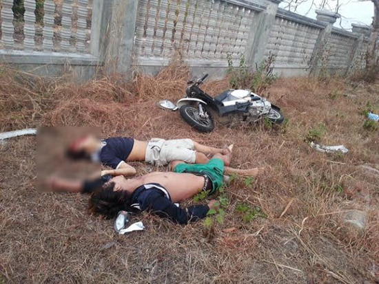 ព្រះសីហនុ ៖ យុវជន២នាក់នេះ ត្រូវបានគេប្រទះ ឃើញដេកស្លាប់ ក្បែរគ្នា នៅលើចញ្ចើមផ្លូវម្តុំឆ្នេរឯករាជ្យ កាលពីព្រឹកថ្ងៃទី២០ ខែមីនា ឆ្នាំ២០១៥ ស្ថិតក្នុងសង្កាត់លេខ៥ ក្រុងព្រះសីហនុ ។ នៅជិតសាកសព គេរកឃើញមានម៉ូតូ ដំបង ដាវសាំម៉ូរៃ ក៍ប៉ុន្តែសមត្ថកិច្ចពុំទាន់មានការអះអាង ជាផ្លូវការថា នេះជាអំពើឃាតកម្មឬ គ្រោះថ្នាក់ផ្សេងណា មួយនៅឡើយទេ ហើយពេលនេះ សមត្ថកិច្ចកំពុងបើកការស៊ើបអង្កេត។
