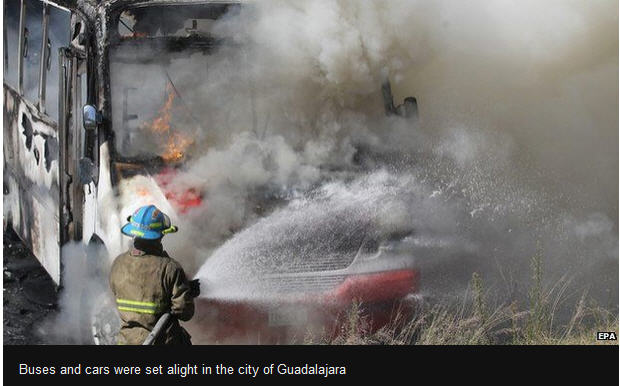 អភិបាលរដ្ឋ Jalisco លោក Aristoteles Sandoval អោយដឹងថា ហោច ណាស់ មនុស្ស ៧ នាក់ ត្រូវ បានសម្លាប់ ខណៈ ១៥ នាក់ផ្សេងទៀត រងរបួស ។ បណ្តា រថយន្តជាច្រើនគ្រឿង រងនូវការឆាបឆេះ ខណៈ បណ្តាអាគារ ធនាគារ និង ស្ថានីយ័ប៉ូលីស រងនូវ ការបំផ្លិច បំផ្លាញទូទាំងតំបន់ ។ លោកបន្ត អោយដឹងថា ការវាយប្រហារលើកនេះ គឺ ជា ប្រតិកម្ម ពីក្រុមឧក្រិដ្ឋជន គ្រឿង ញៀន ខាងលើ ស្តីពី ប្រតិបត្តិចាប់ឃាត់ខ្លួន មេដឹកនាំ របស់ពួកគេ។