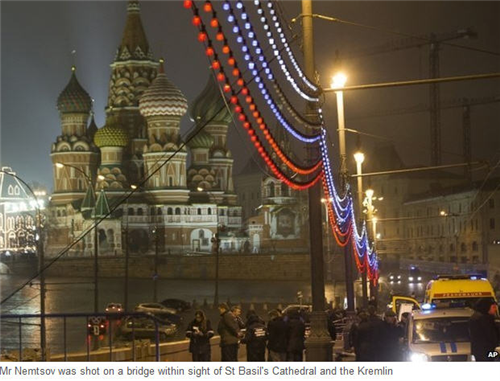 ប្រភពសារព័ត៌មានបរទេស ប៊ីប៊ីស៊ី ក្រោយពីបានដកស្រង់ ការ ស្រាយបំភ្លឺ ពី សំណាក់មន្រ្តីប៉ូលីសក្នុង ស្រុកអោយដឹងថា ៖ ជនដៃដល់ មិនស្គាល់អត្តសញ្ញាណ ដៃប្រដាប់ ដោយកាំភ្លើង មានវត្តមាននៅក្នុងរថ យន្តមួយគ្រឿងនោះ បានលួចបាញ់ប្រហារ សម្លាប់លោក Nemtsov ៤ គ្រាប់ ចំពីក្រោយខ្នង អំឡុងពេល ជនរងគ្រោះ ធ្វើដំណើរឆ្លងស្ពានមួយកន្លែង នៅក្នុងក្រុង ។