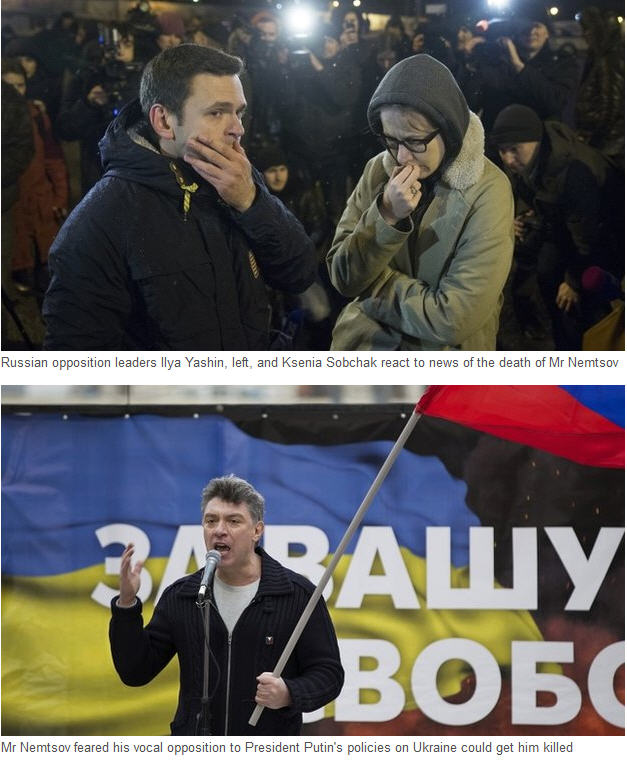 នៅក្នុងបទសម្ភាសន៍ កាលពីពេលថ្មីៗនេះ ជនរងគ្រោះស្លាប់ លោក Nemtsovធ្លាប់បានលើកឡើងអោយ ដឹងថា លោកមានការភ័យខ្លាច ជាខ្លាំង ថាលោក Putin អាចនឹងនាំវាសនាអាក្រក់ ដល់ ខ្លួន រហូតដល់ ស្លាប់បាត់បង់ជីវិត ពីព្រោះចំណាត់ការ ប្រឆាំងរបស់គាត់ ទៅនឹងភ្លើងសង្គ្រាម នៅក្នុងប្រទេស អ៊ុយក្រែន