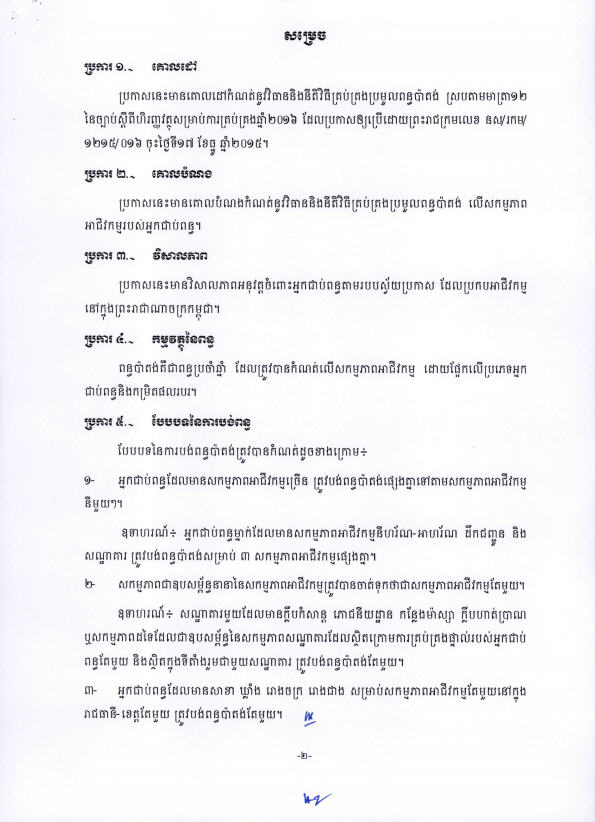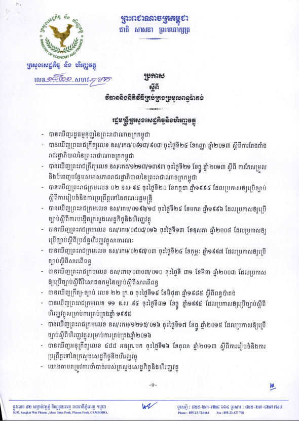 * បញ្ជាក់ ៖ តំណភ្ជាប់នេះ អាចទាញយក ឯកសារ ប្រកាស ស្តីពីវិធាន និងនីតិវិធីគ្រប់គ្រងប្រមូលពន្ធប៉ាតង់