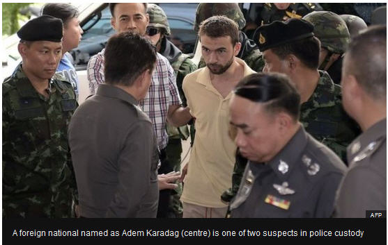 អ្នកនាំពាក្យអោយ ប៉ូលីស ថៃ អោយដឹងថា បុរសដែលអាជ្ញាធរ ចាប់ឃាត់ខ្លួន បានកាលពីដំបូង នោះមានឈ្មោះថា Adem Karadag គឺជាជនសង្ស័យមួយរូប ដែលត្រូវ បានគេមើលឃើញថា ជា បុគ្គលតែមួយ ជាមួយនឹងជនសង្ស័យបំផ្ទុះគ្រាប់បែកអត្តឃាត ពាក់ អាវ ពណ៌លឿវ ផ្តិតរូបភាព បាន ពីប្រព័ន្ធកាម៉េរ៉ា សុវត្ថិភាព ដោយបានទុកកាបូបខ្មៅមួយចោល នៅកន្លែងកើតហេតុ ។