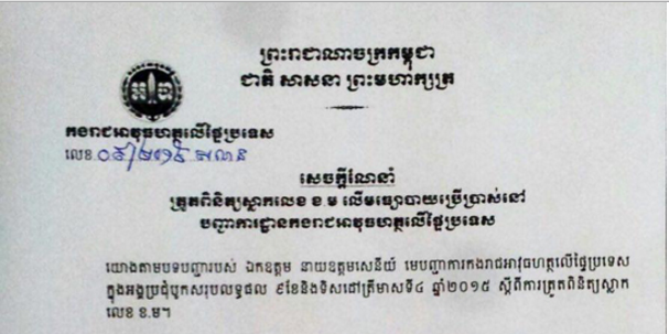 ភ្នំពេញ ៖ លោកឧត្ដមសេនីយ៍ឯកវង្ស ពិសេន មេបញ្ជាការរងកងរាជអាវុធហត្ថលើ ផ្ទៃប្រទេស នៅថ្ងៃទី១៦ ខែតុលា ឆ្នាំ២០១៥ នេះ បានចេញសេចក្ដីណែនាំឱ្យមានការត្រួត ពិនិត្យស្លាកលេខ ខ ម លើមធ្យោបាយប្រើ ប្រាស់នៅ បញ្ជាការដ្ឋានកងរាជអាវុធហត្ថលើ ផ្ទៃប្រទេស ដើម្បីលុបបំបាត់ភាពអនាធិប តេយ្យប្រើស្លាកលេខ ខ.ម គ្មានច្បាប់ទម្លាប់។