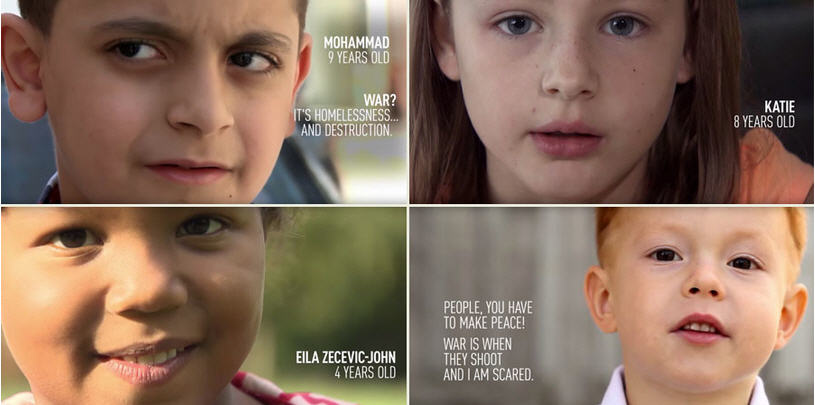 វ័យ ៤ ឆ្នាំ នាងតូច Eila Zecevic-John លាន់មាត់អោយដឹងថា "សង្គ្រាម?" នាងខ្ញុំ មិនធ្លាប់បានលឺ ពាក្យចម្លែកមួយនេះ ពីមុនមកនោះទេ ។ ដោយឡែក មានវត្តមានដូចគ្នា ពីទីក្រុងឡុងដ៍ក្មេងប្រុស តូចដែលមានឈ្មោះថា Louis Zelevich-John វ័យ ៧ ឆ្នាំនោះ អោយដឹងថាសង្គ្រាមគឺជាការប្រយុទ្ធ វាយប្រហារ ប្រទេសមួយផ្សេងទៀត ខណៈ Savva មានវ័យ ៧ ឆ្នាំដូចគ្នានោះ ឆ្លើយអោយដឹងថា ៖ សង្គ្រាម គឺជាការសម្លាប់មនុស្ស ទៅវិញទៅមក ។ ច្រើនជាងនេះទៅទៀត ស្តីពីនិយមន័យក្មេងតូច ទៅលើ ពាក្យថា សង្គ្រាមនោះ តោះតាមដានឃ្លីបខាងក្រោមនេះ ទាំងអស់គ្នា ៖