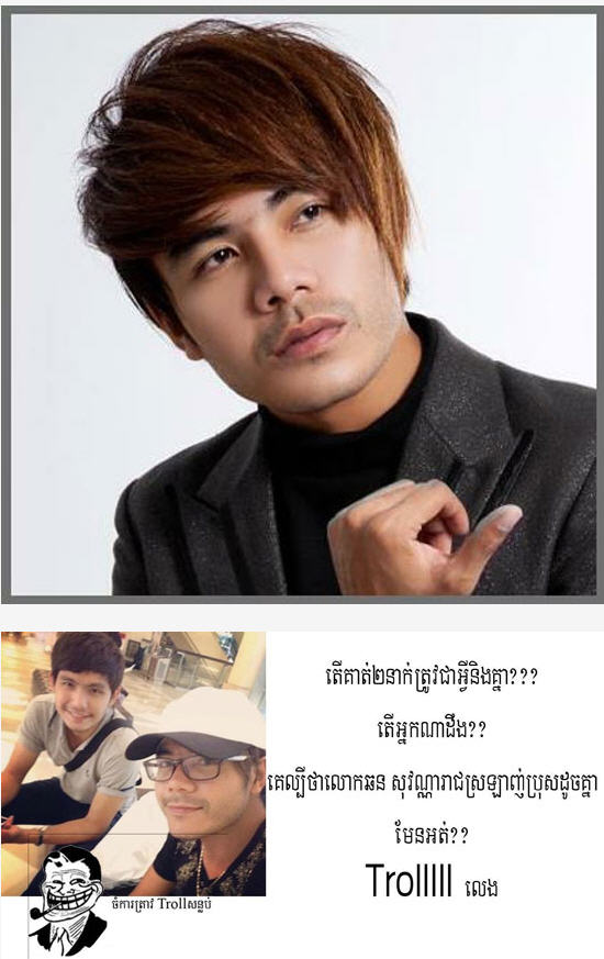 ភ្នំពេញ៖ តារាចម្រៀងដ៏ល្បីល្បាញប្រចាំផលិតកម្ម ហង្សមាស និងជាគ្រូ បង្វឹកម្ចាស់ពាន «The Voice Cambodia season 1» លោក ឆន សុវណ្ណារាជ ដែលចប្ចុប្បន្នលោកបន្តតំណែងជា គណកម្មការ ក្នុងកម្មវិធីលំដាប់ថ្នាក់ ពិភពលោកដដែល គឺ «Cambodian Idol » បានសម្ដែងការហួសចិត្ត អស់សំណើចខ្លាំង ចំពោះព័ត៌មានជាប់មន្ទិល ស្នេហ៍ស្រឡាញ់ភេទដូចគ្នា ដែលបានលេចឮកាលពីពេលថ្មីៗនេះ ថាជាគូស្នេហ៍ប្ដូរផ្ដាច់ ប៉ុន្តែតាមការពិត រូបនោះជាប្អូនប្រុសរបស់លោក ឈ្មោះ ឆន សុវណ្ណដា មិនមែនជាអ្នកឆ្ងាយឡើយ ។