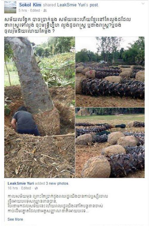 យ៉ាងណាក៏ដោយគេមិនទាន់ដឹងប្រភពទីតាំងនៃរូបដែលមានអ្នកភូមិម្នាក់គាស់ដើមត្នោត ជាច្រើនប្រុងយកទៅលក់ នោះទេ ក៏ប៉ុន្តែអ្នកប្រើ Facebook សម្តែងការសោកស្តាយចំពោះសកម្មភាព ទាំងនេះអាចបណ្តាលឲ្យបាត់បង់ អត្តសញ្ញាណជាតិ។