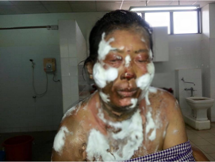 សមត្ថិច្ចមូលដ្ឋានបានឲ្យដឹងថា ហេតុការណ៍នេះ បានកើតឡើងនៅថ្ងៃទី៧ ខែមករា ឆ្នាំ២០១៦ នៅភូមិរអាងក្រោម ឃុំរអាង ស្រុកកំពង់សៀម ខេត្តកំពង់ចាម ដោយស្ត្រីរងគ្រោះមានឈ្មោះ លុយ ភាព អាយុ៤៦ឆ្នាំ ចំណែកប្តីចុងចិត្តតិរិច្ឆាន ដែលជនល្មើសមានឈ្មោះ ញាន លាភ។ បន្ទាប់ពីចាក់សាំងដុតប្រពន្ធរួច ប្តីចិត្តអប្រិយរូបនេះ បានរត់គេចខ្លួនបាត់។