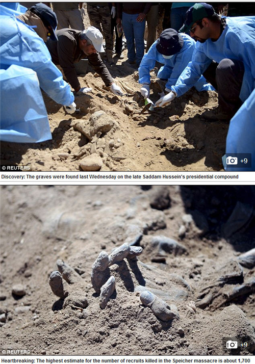 ព័ត៌មានអន្តរជាតិ ៖ រកឃើញផ្នូរយក្ស មានការសង្ស័យ ជាទីប្រជុំសព ទាហានអ៊ីរ៉ាក់ ១៧០០ នាក់ ដែល ត្រូវបានសម្លាប់ដោយក្រុមរដ្ឋអ៊ីស្លាម ជ្រុលនិយម ក្រោយពីត្រូវបាន ចាប់ខ្លួនបាន នៅក្នុងទីក្រុង Tikrit ប្រទេស អ៊ីរ៉ាក់ ។