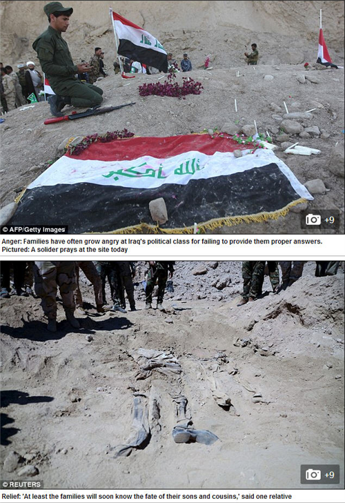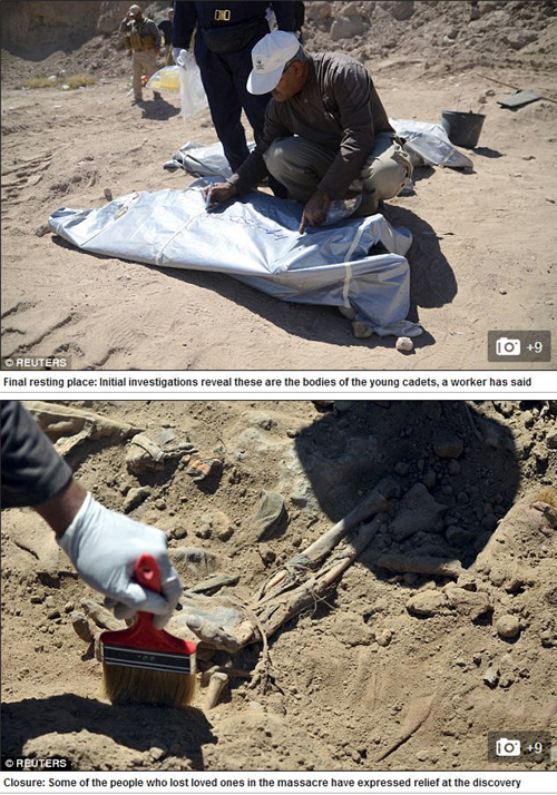 ការជីកគាស់កកាយ រកសពទាហានត្រូវបានធ្វើឡើង នៅក្នុងក្រុង បន្ទាប់ពីកងកម្លាំងប្រទេស អ៊ីរ៉ាក់ និង ពលទាហាន Shia បានដណ្តើមបានមកវិញ ទីក្រុង បន្ទាប់ពីស្ថិតនៅក្រោម ការកាន់កាប់ របស់ក្រុម IS អស់រយៈពេលយូរ ។ គួរបញ្ជាក់ថា DNA នឹងត្រូវយកទៅប្រើប្រាស់ គោលបំណងកំណត់អត្តសញ្ញាណ អោយបាននូវ សាកសពទាំងនោះ បន្ទាប់ពីគាស់ចេញពីផ្នូរ ៕