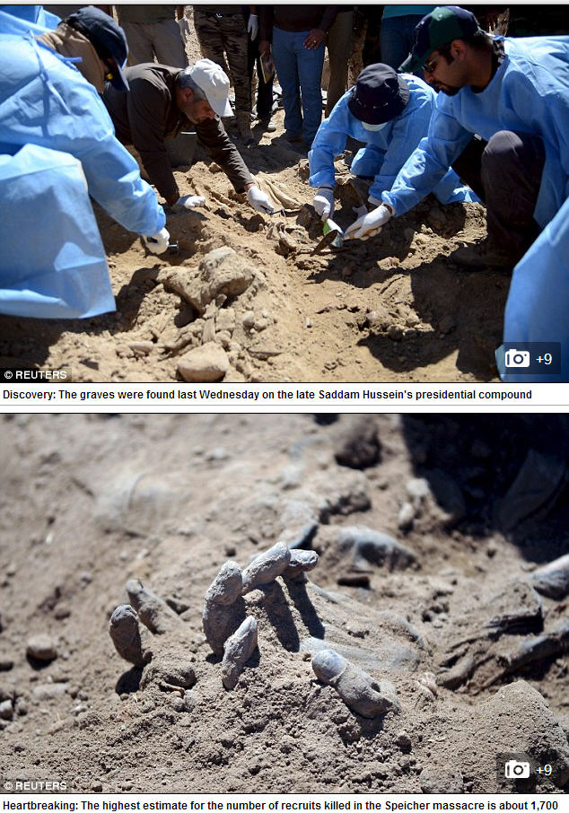 សេចក្តីរាយការណ៍ ពីទំព័រ ប៊ីប៊ីស៊ី បន្តអោយដឹងថា ៖ ផ្នូរយក្សមួយកន្លែងខាង លើនេះ ត្រូវបានរកឃើញ នៅជិតអតីតមូលដ្ឋានទ័ព អាមេរិក Camp Speicher ។ ក្រុមការងារ ធ្វើ កោសល្យវិច័យ បានចាប់ផ្តើម ជីកគាស់កកាយផ្នូ ១២ កន្លែង ក្រោយពីទីក្រុង មួយនេះ រំដោះបានចេញពី ការ គ្រប់គ្រង របស់ក្រុមរដ្ឋ អ៊ីស្លាមជ្រុលនិយម IS ។