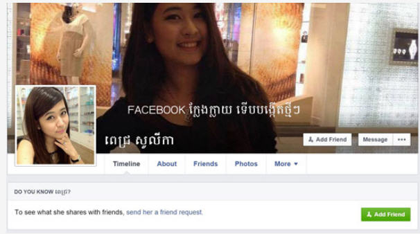 ភ្នំពេញ៖ បន្ទាប់ពីមានព័ត៌មានមួយ ដែលសរសេរវាយប្រហារ បង្ខូចកេរ្តិ៍ឈ្មោះ យ៉ាងខ្លាំងទៅលើ កញ្ញា ពេជ្រ សូលីកា តារាចម្រៀង របស់ផលិតកម្ម អឹម ដោយប្រើប្រាស់ Account Facebook ឈ្មោះ ពេជ្រ សូលីកា ដែលទើបនឹងបង្កើត កាលពីម្សិលមិញ, បន្ទាប់ពីបានដឹង ព័ត៌មាននេះ នៅថ្ងៃទី២២ ខែកក្កដា ឆ្នាំ២០១៥នេះ កញ្ញា ពេជ្រ សូលីកា មានការភ្ញាក់ផ្អើលយ៉ាងខ្លាំង បានចេញមុខ ដោយបដិសេធ ដាច់អហង្កាថានេះ «មិនមែន Account Facebook របស់កញ្ញានោះទេ»។
