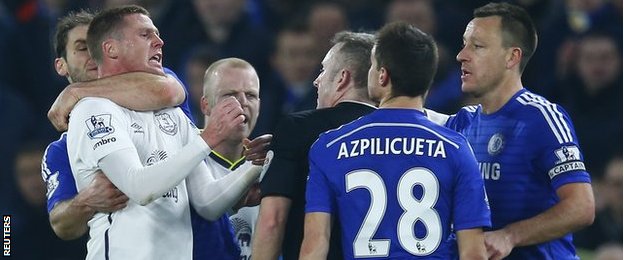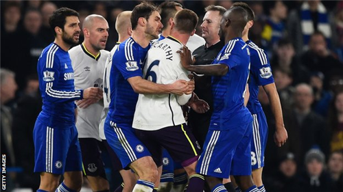 កីឡាករខ្សែការពាររបស់ Chelsea ឈ្មោះថា Branislav Ivanovic ដែលជាអ្នកសកម្មជាងគេក្នុង ជំលោះ នោះ មិនអាចប្រឈមមុខនឹងការ ប្រកួត បន្ដទៀតបានឡើយ ក្រោយពេលកីឡាករ បានប៉ះទង្គិចនឹងកីឡាករ ក្រុម Everton ឈ្មោះថា James McCarthy ។