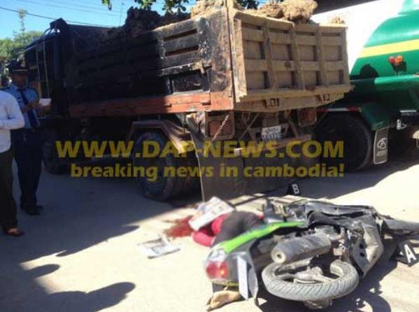 ភ្នំពេញ៖ គ្រោះថ្នាក់ ចរាចរណ៍មួយ បង្កឡើងដោយ រថយន្ដដឹកដីមួយគ្រឿង បានបុកម៉ូតូ ពេញទំហឹង បណ្ដាលឲ្យបុរសម្នាក់ ស្លាប់នៅកន្លែងកើតហេតុ កាលពីវេលាម៉ោង ៨និង៣០នាទីព្រឹកថ្ងៃទី០៤ ខែកញ្ញា ឆ្នាំ២០១៤ តាមបណ្ដោយផ្លូវលេខ១៩៨៦ ស្ថិតក្នុងសង្កាត់ភ្នំពេញថ្មី ខណ្ឌសែនសុខ ។