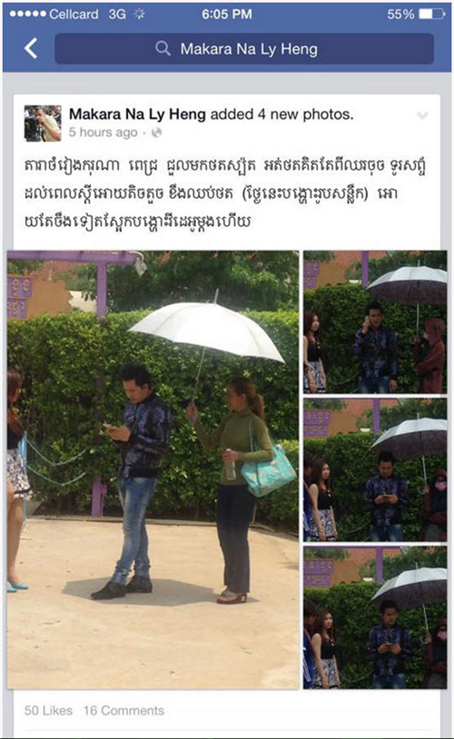 នៅក្នុង Page Top Khmer Supper star បានសរសេរសារខ្លីមួយបង្ហោះនៅលើ Facebook ថា «តារាចម្រៀង ករុណា ពេជ្រ ជួលមកថតស្ពត អត់ថតគិតតែពីឈរ ចុចទូរស័ព្ទ ដល់ពេលស្តីឲ្យតិចតួច ខឹងឈប់ថត (ថ្ងៃនេះបង្ហោះរូបសន្លឹក) ឲ្យតែចឹងទៀត ស្អែកបង្ហោះវីដេអូម្តងហើយ» ។