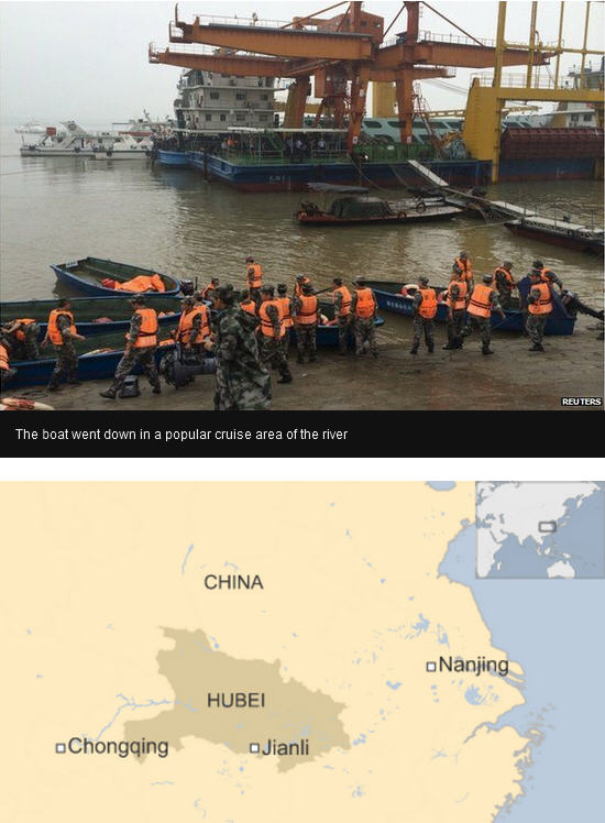 ព័ត៌មានអន្តរជាតិ ៖ ហោចណាស់ មនុស្ស ៥ នាក់ បានស្លាប់បាត់បង់ជីវិត ខណៈ រាប់រយនាក់ផ្សេង ៗទៀតនៅបន្តបាត់ខ្លួននៅឡើយ បន្ទាប់ពីនាវាផ្ទុកមនុស្ស សរុប ៤៥0 នាក់ក្រឡាប់លិចនៅឯទន្លេ Yangtze ខេត្ត Hubei ប្រទេសចិន ។