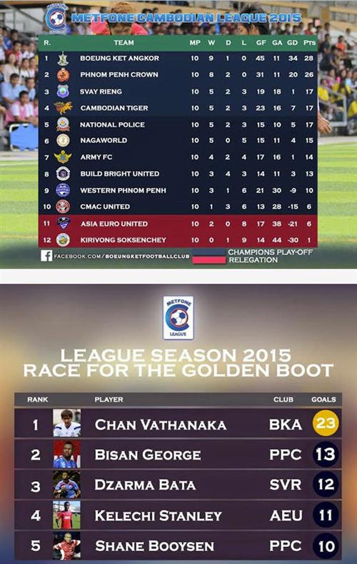 ក្រោយពេលជួយបឹងកេត ឈ្នះក្រុមម្ចាស់ផ្ទះវេស្ទើនភ្នំពេញ ក្នុងលទ្ធផល ៩-៥ កាលពីចុងសប្ដាហ៍មុន វឌ្ឍនាកា រកបាន ៤គ្រាប់ម្នាក់ឯងបន្ថែមទៀត ដែលជាហេតុធ្វើឲ្យគ្រាប់បាល់របស់គេកើនឡើងដល់២៣គ្រាប់ ឈរលើកីឡាករបរទេស ស្បែកខ្មៅ Bisan George របស់ក្រុមភ្នំពេញក្រោន ដែលទើបរកបាន១៣គ្រាប់ប៉ុណ្ណោះ ។ ចំណែកកីឡាករ Dzarma Bata របស់ក្រុមស្វាយរៀង វិញរកបាន១២គ្រាប់ កីឡាករ Kelechi Stanley របស់ក្រុមអាស៊ីអឺរ៉ុប រកបាន១១គ្រាប់ និងកីឡាករ Booysen Shane របស់ភ្នំពេញក្រោន រកបាន១០គ្រាប់ ។