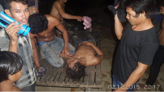 ភ្នំពេញ៖ យុវជនម្នាក់ត្រូវបាន ប្រជាពលរដ្ឋ និងកម្លាំងសមត្ថកិច្ច ជួយសង្គ្រោះនឹងដឹកបញ្ជូន ទៅកាន់មន្ទីរពេទ្យភ្លាមៗ បន្ទាប់ពីរងការវាយដំ កាប់ចាក់ដោយដាវ និងអាវុធមុខស្រួចរបស់ ក្រុមក្មេងស្ទាវ២៨នាក់ នៅមុខឃ្លាំង ស៊ី ហ៊ូហ៊ុយ ក្នុងភូមិទ្រា៤ សង្កាត់ស្ទឹងមានជ័យ ខណ្ឌមានជ័យ ម៉ោង២១៖៣០នាទី ថ្ងៃទី២ ខែធ្នូ ឆ្នាំ២០១៥នេះ។