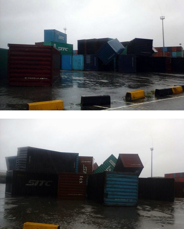 ព្រះសីហនុ ៖ សេចក្តីរាយការណ៍ពីខេត្តព្រះសីហនុ បានឲ្យដឹងថា នៅព្រឹកថ្ងៃទី១៥ ខែកញ្ញានេះ នៅក្នុងខេត្តព្រះសីហនុ បានទទួលរងនូវភ្លៀង ធ្លាក់យ៉ាងខ្លាំង លាយឡំនឹងកូនព្យុះ ក្នុងនោះបើតាមការបញ្ជាក់ របស់មន្ត្រីកំពង់ផែក្រុងព្រះសីហនុ មានទូកុងតឺន័រក្នុងកំពង់ផែនេះ យ៉ាងហោចជាង៦០ទូ បានប៉ើងគលើគ្នា ដែលឃើញហើយគួររន្ធត់បំផុត។ លើសពីនេះភ្លៀងលាយ ព្យុះនេះបានធ្វើឲ្យខូចខាត នូវការិយាល័យកំពង់ផែ អស់មួយចំនួនផងដែរ។