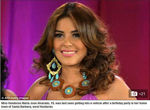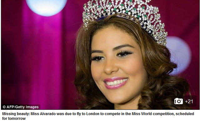 គួរបញ្ជាក់ថា នាង Alvarado ជាបេក្ខភាព តែមួយរូប គ្រងតំណែង ជ័យ លាភី បវរកញ្ញាសម្រស់ Miss Honduras កាលពីខែ មេសា កន្លងទៅនេះ រៀបចំគ្រោងនឹងធ្វើដំណើរចាកចេញទៅកាន់ទីក្រុង ឡុងដ៍ ប្រទេស អង់គ្លេស ដើម្បីចូលរួម កម្មវិធីប្រកួត បវរកញ្ញាឯកពិភពលោក Miss World contest អំឡុងខែធ្នូ ខាងមុខនេះ ។ របាយការណ៍ បញ្ជាក់អោយដឹងថា ពួកគេទាំងពីរនាក់ បានបាត់ខ្លួន អំឡុងថ្ងៃព្រហស្បត្តិ៍ សប្តាហ៍កន្លងទៅនេះ ៕