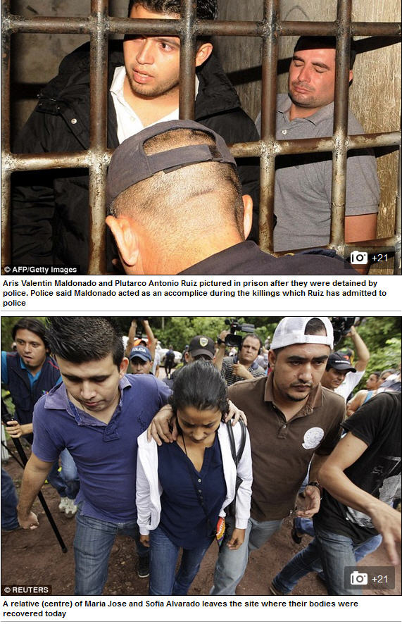 ព័ត៌មានអន្តរជាតិ ៖ ប៉ូលីស នៅក្នុងប្រទេស ហុងឌូរ៉ាស់ បានធ្វើការចាប់ឃាត់ខ្លួន បុរសពីរនាក់ ពាក់ព័ន្ធ នឹងករណីសម្លាប់ បវរកញ្ញាសម្រស់ នាង Maria Jose Alvarado វ័យ ១៩ ឆ្នាំ និង បងប្អូនស្រីរបស់នាង ម្នាក់ទៀត ក្រោយពីពួកគេទាំងពីរនាក់បានបាត់ខ្លួន កាលពីយប់ សប្តាហ៍កន្លងទៅ ។