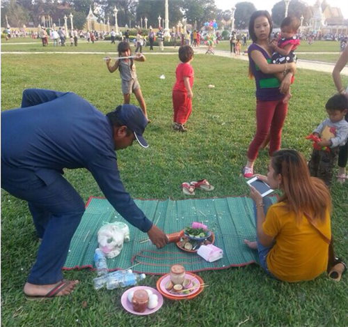 លោកឈឹម ឌីណា អភិបាលរងខណ្ឌដូន ពេញ បានមានប្រសាសន៍ថា កាលពីពេល កន្លងទៅ អាជ្ញាធរបានហៅ ប្រជាពលរដ្ឋមួយ ចំនួនមកធ្វើការអប់រំនិងដកហូតកន្ទេលរបស់ ពួកគាត់ មិនប្រគល់ឱ្យទៅវិញនោះឡើយ ក្រោយ ពីបានយកទៅក្រាលលើស្មៅសួនមុខ ព្រះបរមរាជវាំង ដែលនាំឱ្យប៉ះពាល់ខាង ផ្នែកបរិស្ថាននិង សោភ័ណភាពនៅ ទីនោះ ដោយសារតែប្រជាពលរដ្ឋបានបោះចោល កាកសំណល់នៃនំចំណីទាំងនោះនៅលើសួន ច្បារ ដោយមិន យកទៅទុកដាក់ក្នុងធុង សំរាមឱ្យបានត្រឹមត្រូវ។