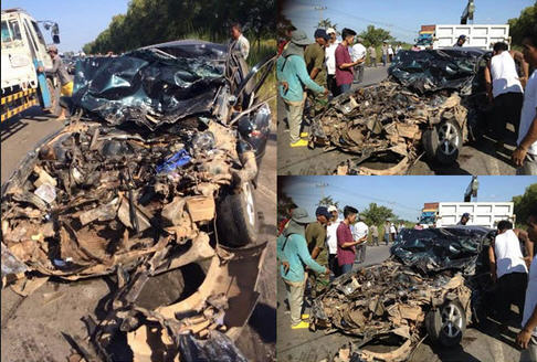 (បន្ទាយមានជ័យ)៖ យ៉ាងហោចណាស់ មនុស្សម្នាក់បានស្លាប់ និង ៤នាក់ផ្សេងទៀត រងរបួសធ្ងន់ ក្នុងហេតុការណ៍គ្រោះថ្នាក់ចរាចរណ៍ ដ៏រន្ធត់មួយដែលកើតឡើង រវាងរថយន្តយីឌុប បុកម៉ូតូ រេចង្កូចទៅប៉ះនឹង រថយន្តកាមរីមួយគ្រឿងទៀត ដែលបើកបរក្នុងទិសដៅបញ្ច្រាសគ្នា ។ សមត្ថកិច្ចក្រុងប៉ោយប៉ែតបញ្ជាក់ថា ហេតុការណ៍គ្រោះថ្នាក់នេះ កើតឡើងលើកំណត់ផ្លូវជាតិលេខ៥ ស្ថិតក្នុងភូមិស្ទឹងបត់ សង្កាត់ផ្សារកណ្តាល ក្រុងប៉ោយប៉ែត នៅម៉ោងប្រមាណ ១២៖៤៥នាទី ថ្ងៃទី៨ ខែវិច្ឆិកានេះ ជនរងគ្រោះដែលស្លាប់ជាអ្នកបើកម៉ូតូ ខណៈអ្នករងរបួសធ្ងន់ទាំង ៤នាក់ ម្នាក់ជាម្ចាស់រថយន្តកាមរី និង៣នាក់ទៀតមិនទាន់ ស្គាល់អត្តសញ្ញាណ៕