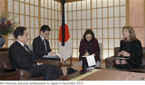 គួរបញ្ជាក់ថា លោកស្រី Caroline Kennedy គឺជាកូនស្រីអតីតប្រធានាធិបតី សហរដ្ឋអាមេរិក John F. Kennedy ខណៈលោកស្រី បានក្លាយជា ឯកអគ្គរដ្ឋទូតអាមេរិកប្រចាំប្រទេសជប៉ុនចាប់តាំងពីខែវិច្ឆិកា ឆ្នាំ២០១៣ ។