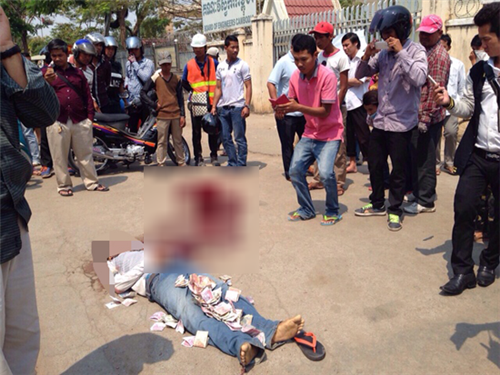 ភ្នំពេញ ៖ យុវជនម្នាក់ ជាសិស្សសាលា ត្រូវបានជនបង្កមិនទាន់ស្គាល់អត្ដសញ្ញាណ កាប់ប្រហារ ពីក្រោយបណ្ដាលឱ្យ ធ្លាក់ពីលើ ម៉ូតូស្លាប់ភ្លាមៗ នៅកន្លែងកើតហេតុ កាលពី វេលាម៉ោង១០និង៣០នាទីព្រឹកថ្ងៃទី ១៩ ខែមីនា ឆ្នាំ២០១៥នេះ ស្ថិតនៅទល់មុខ សភាពាណិជ្ជកម្ម តាមបណ្ដោយផ្លូវសហព័ន្ធ រុស្សី សង្កាត់ទឹកល្អក់ទី១ ខណ្ឌទួលគោក ខណៈដែលជនរងគ្រោះកំពុងជិះម៉ូតូពីក្រោយមិត្ដភក្ដិ ។