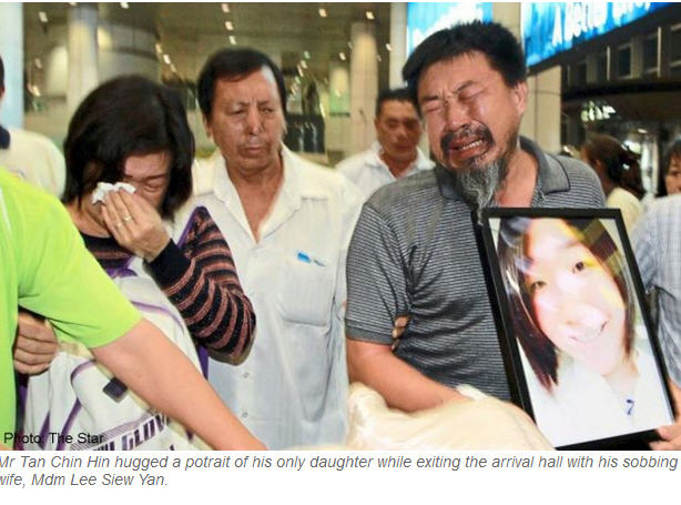 សមាជិកគ្រួសារ ក៏ដូចជា បណ្តាមិត្តភក្កិជនរងគ្រោះ ប្រមាណជាង ២០ នាក់ ក្រោយទទួលបានសពជន រងគ្រោះ នាងTan Wei ពីយន្តហោះ MASkargo ហើយនោះ ពួកគេបាន នាំ វត្តមាន សាកសព នារីវ័យ ក្មេងម្នាក់នេះ ទៅឈាបនដ្ឋាន Dong Zhong ដើម្បីធ្វើបុណ្យតាមប្រពៃណី ។