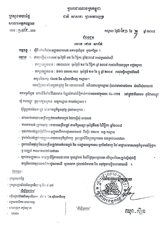 សូមជំរាបថា ក្នុងករណីនេះ លោកឧកញ៉ា ថោង សារ៉ាត់ ក៏បានដាក់ពាក្យបណ្តឹង ទៅសាលាដំបូង រាចធានីភ្នំពេញផងដែរ ដោយចោទប្រកាន់ ប្រជាពលរដ្ឋទាំង២៩គ្រួសារនោះថា បានលួច និងបំផ្លិចបំផ្លាញ ទ្រព្យសម្បត្តិ របស់គាត់ ក្នុងថ្ងៃមានជម្លោះដំបូង ។