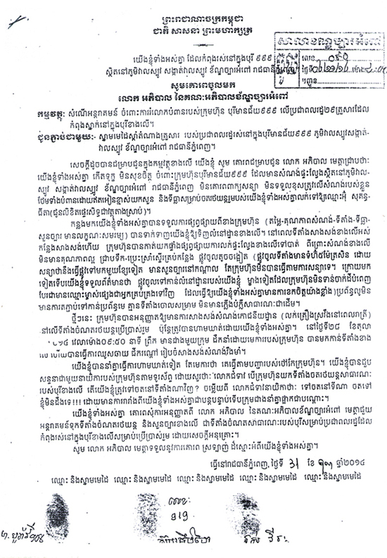ភ្នំពេញ៖ ប្រជាពលរដ្ឋចំនួន ២៩គ្រួសារ ដែលបានទិញផ្ទះល្វែងនៅក្នុងបុរី៩៩៩ នៅបណ្តោយផ្លូវជាតិ លេខ១ ស្ថិតក្នុងសង្កាត់វាលស្បូវ ខណ្ឌច្បារអំពៅ រាជធានីភ្នំពេញ ពីក្រុមហ៊ុនបុរីមានជ័យ៩៩៩ បាននាំគ្នាចោទប្រកាន់ លោកឧកញ៉ា ថោង សារ៉ាត់ ដែលជាម្ចាស់ក្រុមហ៊ុនបុរីនេះថា បានលក់សួនច្បារ ដែលជាទីធ្លាចតរថយន្តរបស់ពួកគេ ដោយរំលោភលើកិច្ចសន្យាទិញដូរកន្លងមក ។