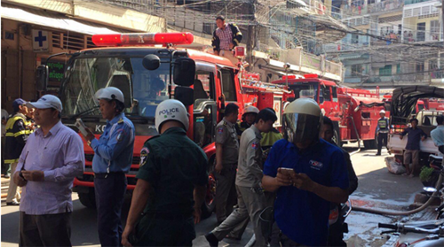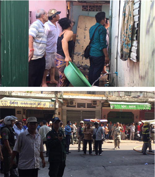 ភ្នំពេញ ៖ អគ្គិភ័យបាននឹងកំពុង ឆាបឆេះផ្ទះ ប្រជាពលរដ្ឋ នៅជាន់ទី៤ សង្កាត់អូរប្ញស្សីទី៤ ខណ្ឌ៧មករា កាលពី ព្រឹកថ្ងៃទី៨ ខែមិថុនា ឆ្នាំ២០១៥ ។
