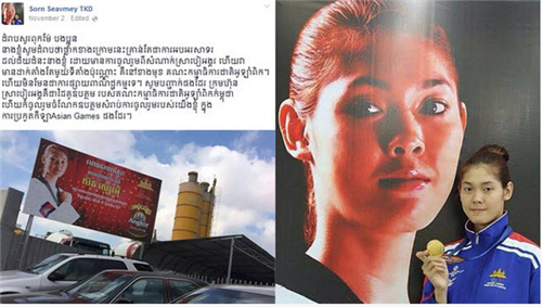 កញ្ញាបានសរសេរថា “ជំរាបសួរពុកម៉ែ បងប្អូន នាងខ្ញុំសូមជំរាបថា ផ្លាកខាងក្រោមនេះ គ្រាន់តែជាការអបអរសាទរ ដល់ជ័យជំនះនាងខ្ញុំប៉ុណ្ណោះ ដោយមានការចូលរួមពី សំណាក់ស្រាបៀរអង្គរ ហើយវាមានដាក់តាំងតែមួយទីតាំងប៉ុណ្ណោះ គឺនៅខាងមុខគណៈកម្មាធិការ ជាតិអូឡាំពិក ។ ហើយមិនមែនជា ការផ្សាយពាណិជ្ជកម្មទេ ។ សូមបញ្ជាក់ផងដែរថា ក្រុមហ៊ុនស្រាបៀរអង្គរ គឺជាដៃគូឧបត្ថម្ភ របស់គណៈកម្មាធិការជាតិអូឡាំពិកកម្ពុជា ហើយក៏ចូលរួមចំណែក ឧបត្ថម្ភសម្រាប់ការចូលរួមរបស់យើងខ្ញុំ ក្នុងការប្រកួតកីឡា Asian Games ផងដែរ” ។