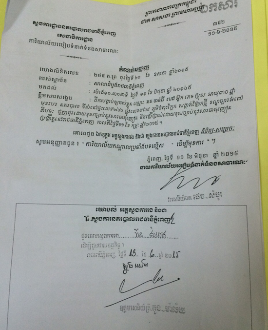 បច្ចុប្បន្នជនសង្ស័យរូបនេះ ត្រូវបានបញ្ជូន ខ្លួនទៅកាន់អធិការដ្ឋាននគរបាលខណ្ឌច្បារ អំពៅ ដើម្បីបញ្ជូនទៅកាន់តុលាការចាត់ការ បន្ដ ។