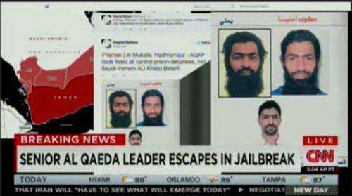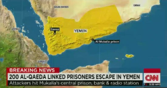 ព័ត៌មានអន្តរជាតិ ៖ មន្រ្តីជាន់ខ្ពស់ មកពីក្រសួងការពារជាតិ ផ្តល់ ជាកិច្ចសម្ភាស៍ អោយដឹងថា ក្រុម ឧទ្ទាម អាល់ កៃដា បានធ្វើការវាយប្រហារ ទៅលើពន្ធនាគារមួយកន្លែង ស្ថិត នៅក្នុងក្រុងមាត់សមុទ្រ ក្រុង Al Mukallah ប្រទេស យេម៉ែន នាព្រឹកព្រលឹមថ្ងៃព្រហស្បត្តិ៍ ដោយបានរំដោះទណ្ឌិតហោចណាស់ ២៧០ នាក់ ។ សេចក្តីរាយការណ៍ បញ្ជាក់អោយដឹងថា ភាគច្រើននៃក្រុមទណ្ឌិត រត់គេចខ្លួនបានសំរេច នោះគឺមានទំនាក់ទំនងជាមួយនឹងក្រុមភារវករ អាល់ កៃដា ផ្ទាល់ តែម្តង ក្នុង នោះ ភារវករ ជាន់ខ្ពស់ Khaled Batarfi ជាមុខសញ្ញា អទិភាពក្នុងបញ្ជីស្បែកខ្មៅនោះ បានរត់ គេច ខ្លួន បានសម្រេចដូចគ្នាដែរ