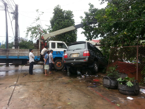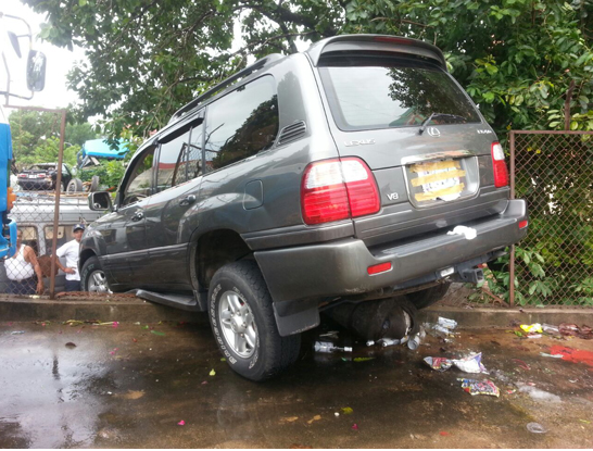 សេចក្តីរាយការណ៏ ពីកន្លែងកើតហេតុ បានអោយដឹងថា ភរិយារបស់លោក អ៊ី សុខា បានមកយករយន្ត ប្តីរបស់ខ្លួន ម៉ាកលុច្សស៊ី ៤៧០ ពាក់ស្លាកនគរបាល ប៉ុន្តែពេលឡើងបើកនោះ ទំនង ជាប់ហ្គែរ ក៏ជ្រុលទៅបុករបង ការិយាល័យ ចរាចរណ៏តែម្តង ប៉ុន្តែមិនបណ្តាលអោយស្រី្តអ្នកបើកបរ រងគ្រោះរបួសនោះទេ ។