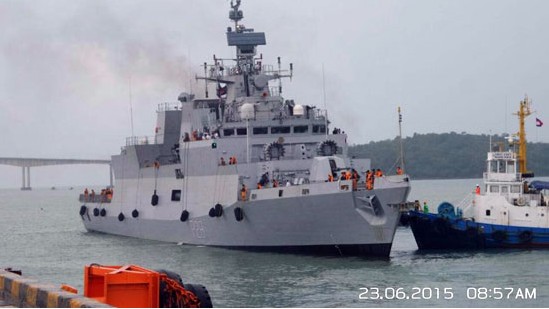 ព្រះសីហនុ៖ នាវាចម្បាំង ប្រទេសឥណ្ឌា ចំនួន២គ្រឿង បានចូលចតនៅ កំពង់ផែស្វយ័ត ក្រុង ព្រះសីហនុ នៅវេលាម៉ោង ០៩ និង០០នាទីព្រឹកថ្ងៃទី២៣ ខែមិថុនា ឆ្នាំ២០១៥ ដោយសុវត្ថិភាព ដើម្បីធ្វើទស្សនកិច្ចនៅកម្ពុជារយៈពេល៤ថ្ងៃ ហើយនឹងធ្វើការចាក ចេញទៅវិញនៅថ្ងៃទី២៧ វេលាម៉ោង០៩ព្រឹក ។