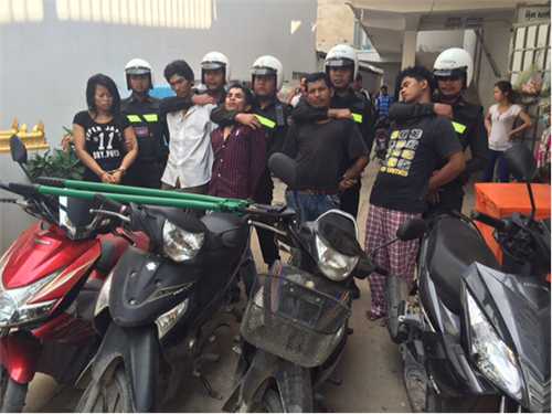 ភ្នំពេញ ៖ កម្លាំងអាវុធហត្ថ ខណ្ឌពោធិ៍ សែន បានបើកប្រតិបត្ដិការ បង្ក្រាបក្រុមចោរ លួចនិងទទួល ផលចោរកម្ម ចំនួន៥នាក់កាល ពីវេលាម៉ោង ១២និង៣០នាទីរសៀលថ្ងៃទី ២១ ខែមេសា ឆ្នាំ២០១៥ ស្ថិតនៅបន្ទប់ជួល លេខ៤D2 ជាន់ទី២ ក្រុមទី២ ភូមិត្រពាំង ល្វា សង្កាត់កាកាប ដោយដកហូតម៉ូតូចំនួន ៤គ្រឿង កន្ដ្រៃយសម្រាប់កាត់សោ និងសម្ភារ សម្រាប់ជក់គ្រឿងញៀន មួយចំនួនទៀត។