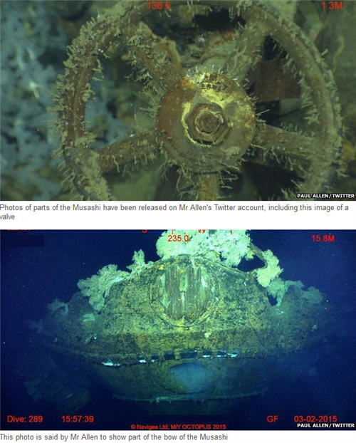 ប្រភពពីទំព័រ ប៊ីប៊ីស៊ី ក្រោយពីបានដកស្រង់សម្តីលោក Allen ចេញផ្សាយអោយដឹងថានាវាចម្បាំងយក្ស មួយគ្រឿងនេះ ត្រូវបានរកឃើញដោយក្រុមរុករកឯកជនរបស់លោក ពោល បាន រ កឃើញ លិចក្រោម ទឹកសមុទ្រ មានរយៈជម្រៅជ្រៅដល់ទៅ ១ គីឡូ ម៉ែត្រ ជាង សម្ងំលាក់ខ្លួនលើផ្ទៃបាតសមុទ្រ Sibuyan ប្រទេសហ្វីលីពីន ។