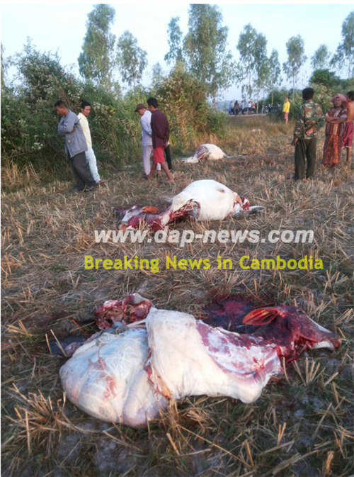 បើយោងតាមបុរសជាម្ចាស់សត្វគោរៀបរាប់ប្រាប់នគរបាលនោះបានឲ្យដឹងថា មុនពេលកើតហេតុ វេលាម៉ោងប្រហែល១១យប់ គាត់បានក្រោកដាក់ចំបើង អោយគោរបស់គាត់ស៊ីរួច ហើយក៏បានឡើងដេកវិញ លុះដល់ម៉ោងប្រហែល០៤ទៀបភ្លឺ គាត់ភ្ញាក់ឡើងមើលគោម្តងទៀត ស្រាប់តែបាត់គោរបស់គាត់អស់ ពីក្រោលរលីងក៍ មានការភ្ញាក់ផ្អើលឆោឡោឡើងដល់អ្នកជិតខាង នាំគ្នាជួយតាមរកលុះដល់ចំណុច វាលស្រែខាងលិចភូមិសាំងដំរី ឃុំឆក់ឈើនាង ក៏ប្រទះឃើញសត្វគោ ទាំង៣ក្បាលនោះ ប៉ុន្តែត្រូវបានក្រុមចោរ ព្រលះយកសាច់ភ្លៅនិងជើងមុខ ក្រោយទៅបាត់បន្សល់ទុកតែខ្លួន និងក្បាលចោល កន្លែងកើតហេតុ ។