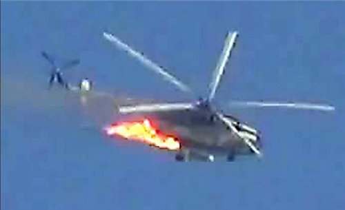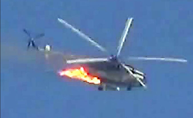 ព័ត៌មានអន្តរជាតិ ៖ ឧទ្ធម្ភាគចក្រ ប្រទេសស៊ីរី មួយគ្រឿង ត្រូវបានគេរាយការណ៍អោយដឹងថា បានបាញ់ ទម្លាក់ ដោយក្រុមបះបោរ Nusra Front មានទំនាក់ទំនងជាមួយនឹងក្រុម អាល់ កៃដា នៅឯមូលដ្ឋានទ័ព ថ្ងៃច័ន្ទ ម្សិលមិញនេះ ក្នុងខេត្ត Idlib ភាគខាងជើង ឆៀងខាងត្បូង ប្រទេស ស៊ីរី នេះបើយោងតាមសេចក្តី រាយការណ៍ ពីក្រុមអ្នកសង្កេតការណ៍ ។
